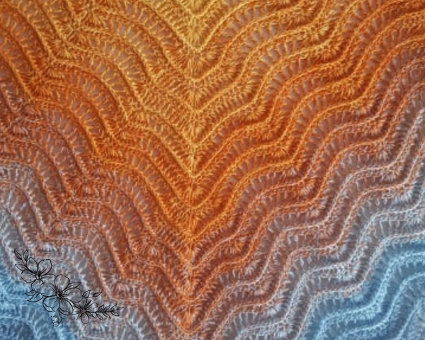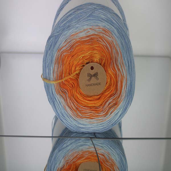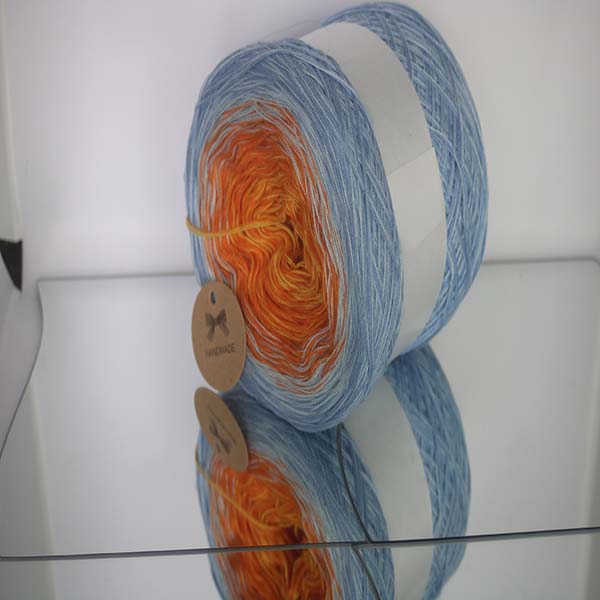 Cette laine 3 – 6 fils- non torsadé – change de couleur à intervalles réguliers. Vous obtiendrez ainsi de magnifiques dégradés et les tout petits nœuds ‘en huit’ (reliant deux fils d’une couleur différente) ne sont pas du tout visibles sur l’ouvrage fini.