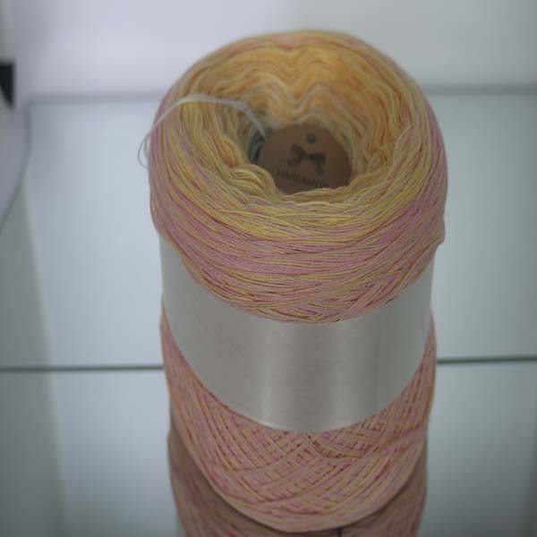Cette laine 3 – 6 fils- non torsadé – change de couleur à intervalles réguliers. Vous obtiendrez ainsi de magnifiques dégradés et les tout petits nœuds ‘en huit’ (reliant deux fils d’une couleur différente) ne sont pas du tout visibles sur l’ouvrage fini.
